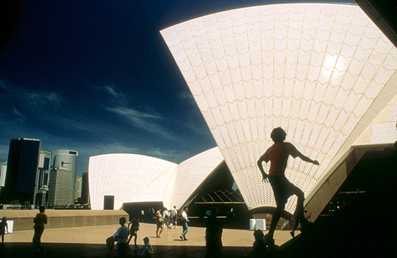 Junge vor dem Opernhaus von Sydney, Australien