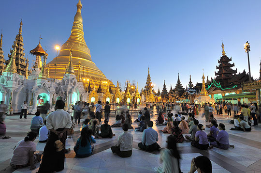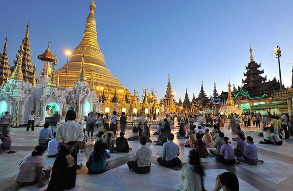 Abends am Swedagon Tempel, Yangoon, Myammar