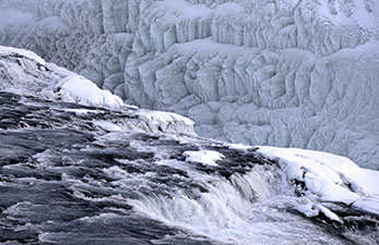 Vatnajoekull Wasserfall im Winter, Island