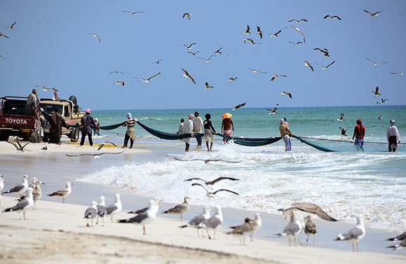 Fischer und Möwen bei Salala, Süd-Oman