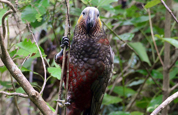 der kluge Kaka-Vogel in Stewart Island, Neuseeland